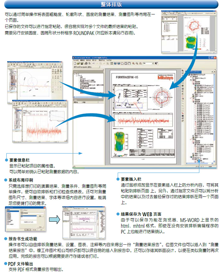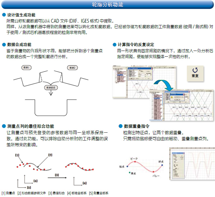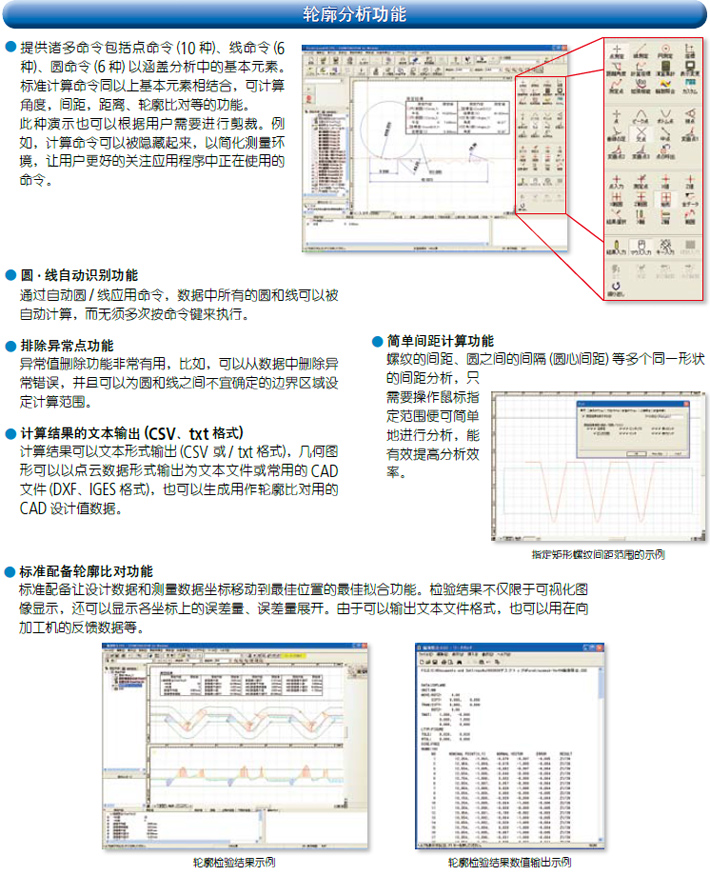 ◆1.采用新型直式測臂檢檢測器◆2.繁瑣校正一次完成◆3.***高水平的指示精度◆4.出眾的操作性◆5.高速移動提高測量效率◆6.簡易型CNC功能二 數(shù)據(jù)處理部 ◆1.方便的測量控制 ◆2.15種語言對應(yīng)◆3.聯(lián)機幫助功能◆4.按鈕編輯功能◆5.簡易統(tǒng)計指令◆6.輪廓分析功能◆7簡潔的整體排版 三 選配件 ◆1.自動化工作臺◆2.防震臺◆3.測臂◆4.測針